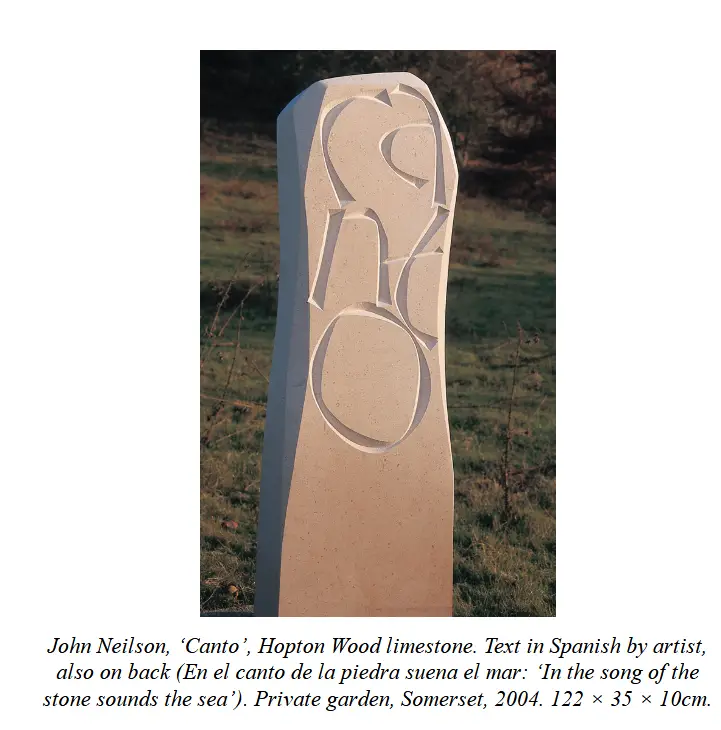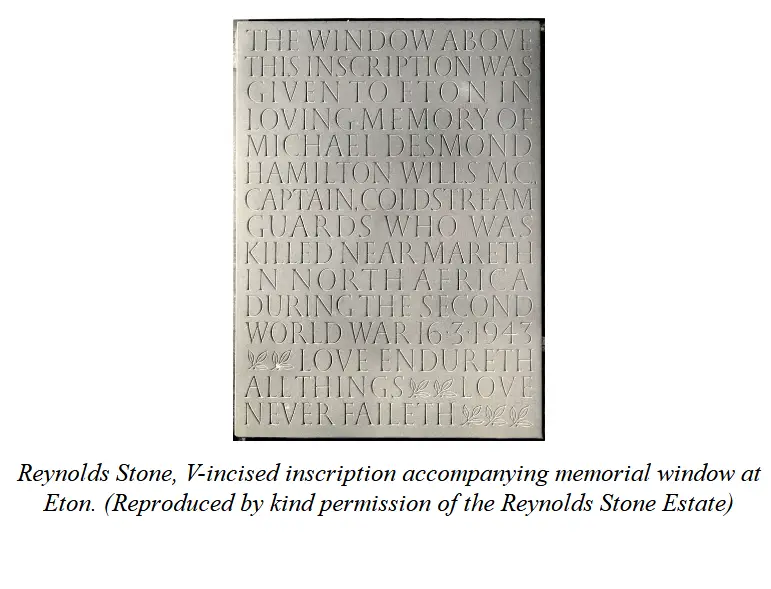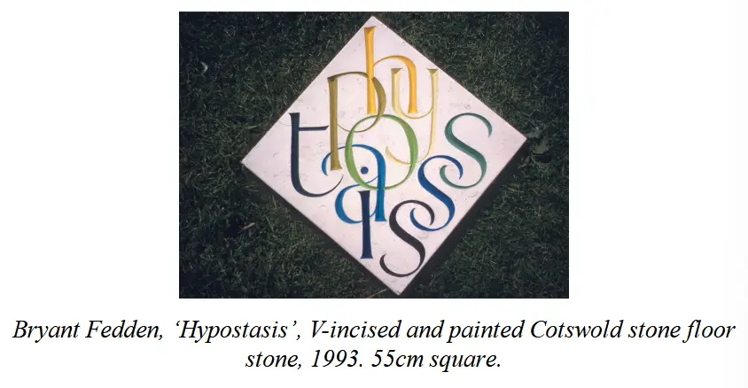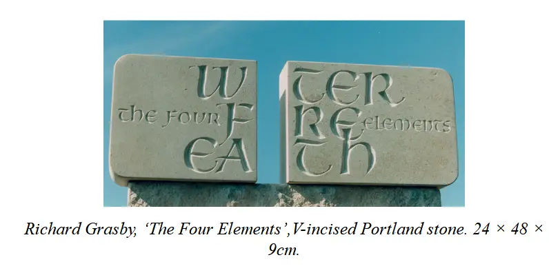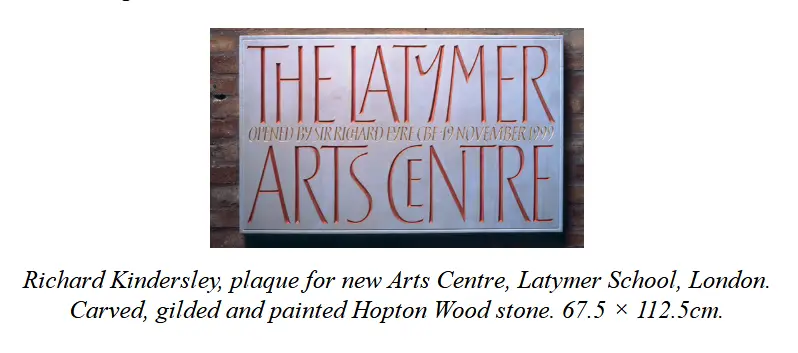 Eric Gill派。祖师Gill,师从Edward Jhonson,一开始是采用凿边的方式刻字,后面全部使用铅笔勾线而后描刻,其助手、后辈多沿用其风格。作为大师级人物。盖尔对制作行为的评论很有意义,他认为创作本身并不是达尔文式的生存竞争,而是对世界的爱。在此引述: