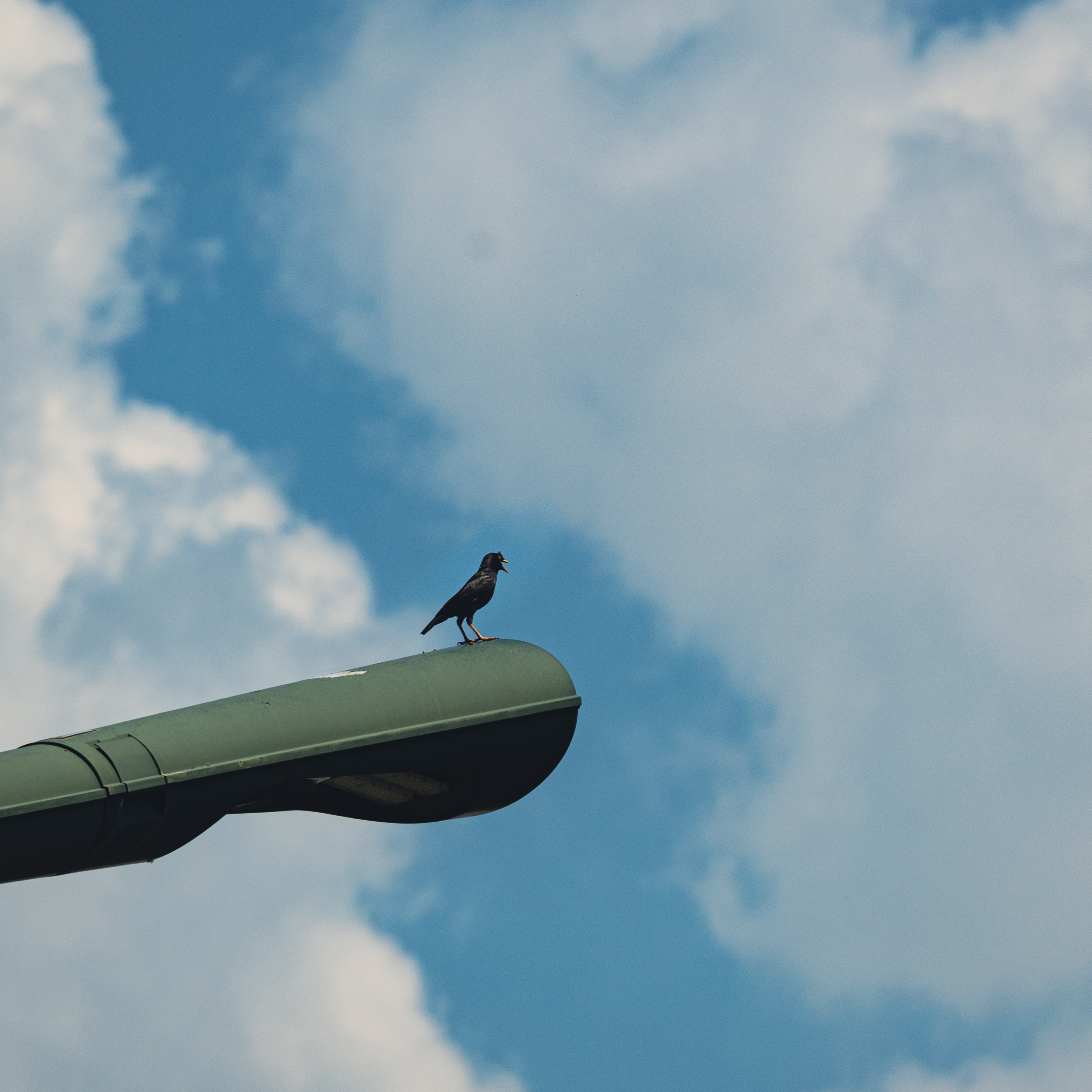 跟着人跑,大概是想吃人丢掉的果皮饼干屑。站路灯上,距离三四米拍摄。