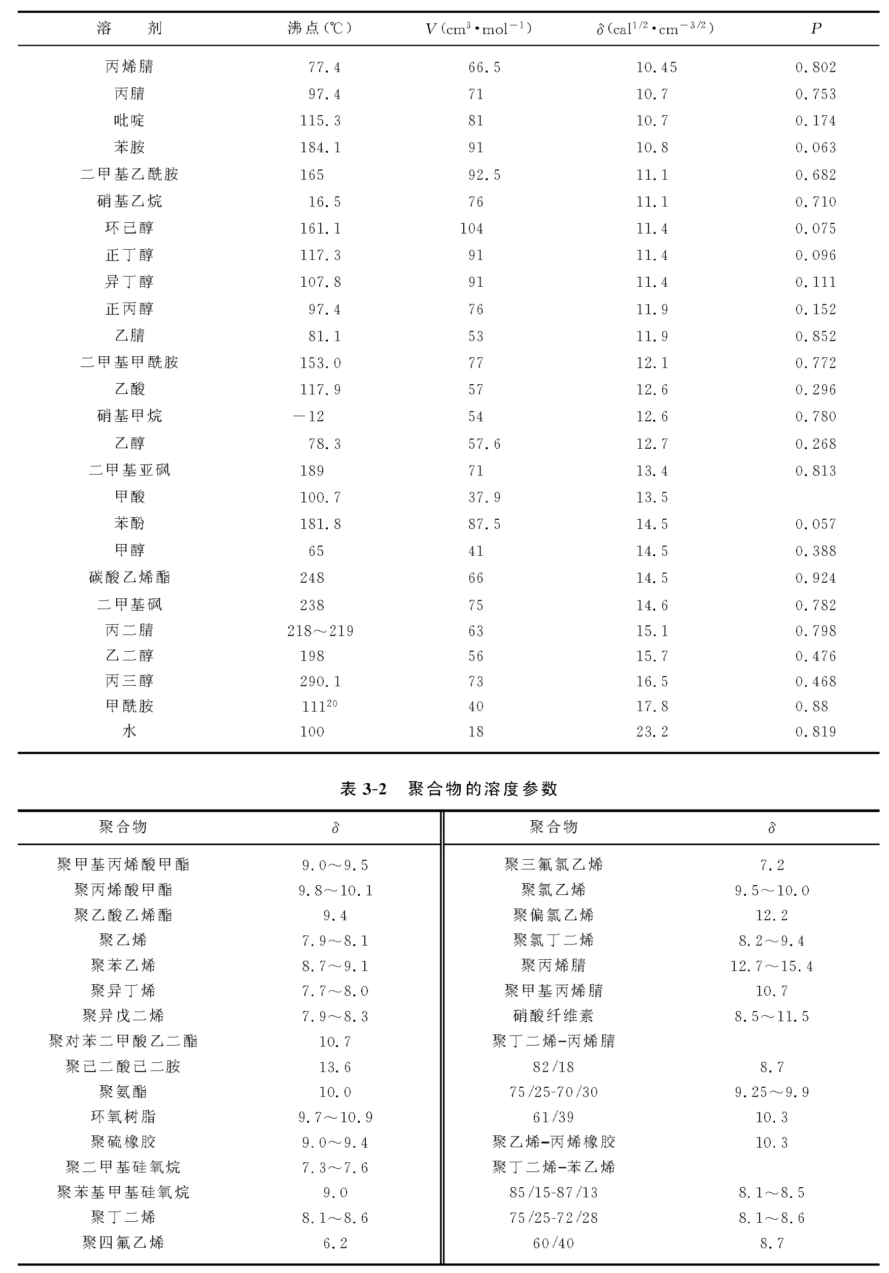 附一:常见高分子溶度表
